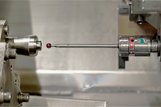 «Wir bearbeiten sehr teure Rohlinge, die zudem bis zu 800 mm lang sind und über diese Länge eine hochpräzise Zerspanung erfordern. Ausschuss wollen wir auf ein Mindestmass reduzieren und gleichzeitig die Bearbeitung möglichst weit automatisieren», betont Martin Giray. «Wir haben die ersten Drehmaschinen mit Robotern zum Be- und Entladen ausgestattet. Die gesamte Automatisierung hängt aber daran, dass die Werkzeuge vor der Bearbeitung präzise eingemessen werden.» Diese Messungen müssen weitestgehend automatisch ablaufen, manuelle Tätigkeiten stören den Zerspanungsprozess und senken die Produktivität. «Ohne Taster gibt es keine Automatisierung und zudem ist die automatisierte Messung genauer als die einer manuell eingelegten Lehre», ergänzt Florian Mayer.