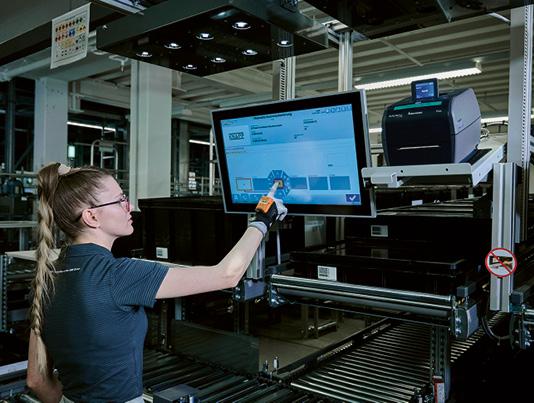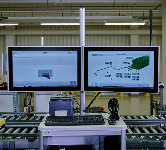 Die Kommissionierung der Waren für die Produktion und den Versand erfolgt an vier ergonomischen Arbeitsplätzen der Pick-it-Easy-Serie, die auf zwei Stockwerke verteilt sind. Die benötigten Komponenten werden nach dem Ware-zur-Person Prinzip den Arbeitsplätzen aus dem Shuttlelager zugeführt. Einerseits werden Kits für die Produktion und andererseits Aufträge für den Versand kommissioniert und anschliessend zur Zwischenpufferung in das Evo Shuttle eingelagert. Der Kommissionierprozess wird durch Kanban-Regale mit Pick-to-Light-Anzeigen für schnelldrehende Komponenten unterstützt.
