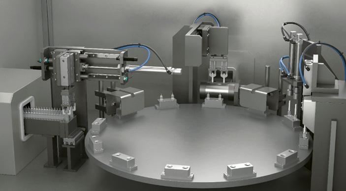 Bei Pick-and-Place-Anwendungen, wie etwa bei der Herstellung von Spritzen in der Pharmaindustrie, dienen Stossdämpfer dazu, die Bewegung bestimmter Aktoren abzubremsen. Aufgrund der hohen Taktfrequenz unterliegen diese Bauteile im Laufe der Zeit zwangsläufig einem Verschleiss. Der induktive Abstandssensor von Pepperl+Fuchs führt bei jeder Bewegung des Dämpfers zwei Geschwindigkeitsmessungen durch und berechnet anschliessend die Bremswirkung als negative Beschleunigung. Anhand dieser Messdaten lässt sich der Verschleissgrad leicht erkennen. Auf diese Weise lassen sich Wartungsarbeiten gezielt einleiten und ungeplante Anlagenstillstände vermeiden.