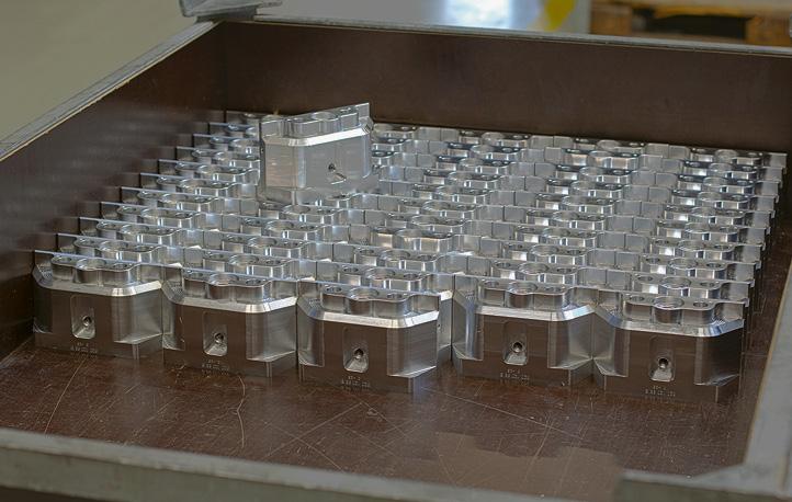 Die Schubert Fertigungstechnik GmbH hat für verschiedene Bauteilgrössen bestimmte Maschinentypen definiert. Es stehen also in den Hallen immer mehrere identische Bearbeitungszentren nebeneinander, um Teile der Grössenklassen S, M, L und XL herzustellen. «Das hat den grossen Vorteil, dass wir Aufträge flexibel über die Maschinen verteilen können», erklärt der für den technischen Bereich zuständige Geschäftsführer Jens Grieser. «Ist eine Maschine defekt, kann der Auftrag auf der Nachbarmaschine fertiggestellt werden. Natürlich vereinfacht das auch die Wartung und Ersatzteilhaltung sowie die Ausbildung der Mitarbeiter.» Im Grössenbereich «XL» setzt Schubert auf DMG MORI Horizontalzentren, während im Bereich «S und M» Fanuc Robodrill-Bearbeitungszentren mit einer Automatisierung von Häberle Feinmechanik zum Einsatz kommen.