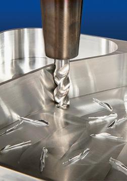 «Speziell für das Schruppen und Schlichten von Aluminium hat ISCAR eine ganze Reihe an Standard-Werkzeugen im Angebot», erläutert Herbert Volk. Beispielsweise den Heliiqmill für Trigon-Wendeschneidplatten mit drei helikalen Schneidkanten für die Bearbeitung von 90°-Schultern, den Helialu mit zweischneidigen, rhombischen Wendeschneidplatten zum Schulter-, Vollnut- und Planfräsen mit extrem hohen Drehzahlen, die polierten ECA Chatter-Free Vollhartmetall-(VHM)-Hochleistungs-Schaftfräser, welche es zudem auch in Kombination mit der neuen Hard Carbon DLC-Beschichtung gibt. «DLC steht für diamond-like carbon coating», erklärt Herbert Volk. «Dabei handelt es sich um eine Nanokomposit-Beschichtung mit den Eigenschaften eines Diamanten, die geringe Reibung, hohe Härte und grosse Korrosionsbeständigkeit aufweist.» Die Späne werden durch die DLC-Beschichtung besser evakuiert, und die glatte Oberfläche verringert die Aufbauschneidenbildung.
